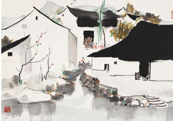 在滿足了基本需求后,孟浩凡才開始考慮,如何為這座古鎮(zhèn)保留傳統(tǒng)江南民居的神韻,又體現(xiàn)出現(xiàn)代學(xué)的美感和創(chuàng)意。他想到了畫家吳冠中。孟浩凡說,比起具象的元素,他更多考慮的是保留“氣質(zhì)”?!氨热缯f你看這色調(diào),色調(diào)是白墻綠瓦,中間有一些灰色系的這種磚,都是老色調(diào)的基底給我們的感覺。這種壓頂?shù)木€條,像吳冠中的畫,都是很抽象的嘛。畫江南民居,他畫出來很抽象的藝術(shù)畫,沒有具象的符號(hào),但是你一看這個(gè)東西它就是江南的,因?yàn)槲蓓數(shù)倪@種曲線、線條,勾勒出了江南的這種俊秀。”