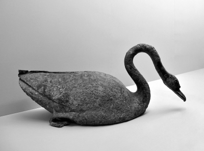 2000年,又一處“前所未見(jiàn)”的陪葬坑K0007被發(fā)現(xiàn),這里出土的不是陶俑,而是青銅水禽——20只雁、20只天鵝、6只仙鶴,它們非常規(guī)律地分布在水池兩邊的臺(tái)地上,有的水中覓食,有的伏臥小憩,有的曲頸汲水,栩栩如生,姿態(tài)各異。另外還出土了造型奇異的陶俑15件。