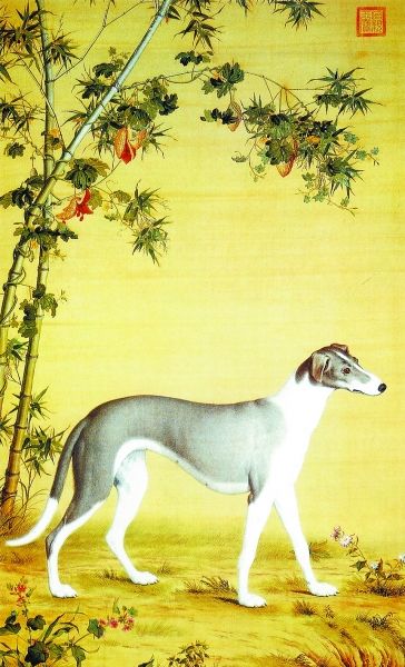 自宋代始花鳥畫獲得空前發(fā)展,皇家畫院極盛,追求精工寫實,動物畫這時得以獨立出來,單獨的犬畫開始出現(xiàn),現(xiàn)藏于北京故宮的宋李迪《獵犬圖》即是一幅不可多得的作品。他畫的《獵犬圖》造型比例精確,明暗層次清晰,立體感極強,犬的神態(tài)與動態(tài)尤其傳神,將獵犬盯視前方漫步而行的感覺刻畫得入木三分,堪稱形神俱佳之作??梢钥闯霎嫾也粌H具有高超的繪畫表現(xiàn)技巧,對狗的生活習性也有很深的了解,該作品體現(xiàn)了宋代畫家的非凡寫實功力與水平?!澳纤嗡募摇敝坏膭⑺赡暝嬤^一幅風俗畫《補納圖》,畫中一老僧正在專注穿針引線補綴,床榻前一小狗席地而臥,似仰頭目視主人,小狗的刻畫堪稱神來之筆,寥寥幾筆勾勒,狗便活脫而出。