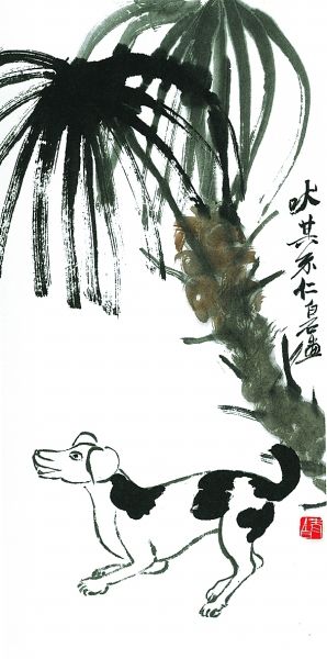 隨著上世紀九十年代國內寵物熱的興起,狗越來越多地進入大眾的日常生活,頻頻成為當代畫家的表現(xiàn)對象。當代大家黃永玉先生的水墨畫,具有諷刺與幽默的色彩,他畫的狗系列畫作,令人忍俊不禁。著名畫家史國良的西藏風情畫中,我們也經常能看到狗的身影,如他畫的《八角街上》,畫中靜臥一角的黑狗使整個畫面平添了許多生活氣息。古今畫狗的名家名作還有很多,實難一一列舉。狗的忠誠、溫順是人類的最愛,正緣于狗與人類的這種特殊關系,狗才成為畫家們百畫不厭的題材。