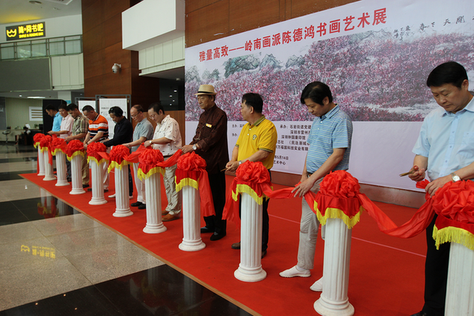 深圳新聞網(wǎng)訊(記者周錦春 通訊員孫善文)5月6日,雷州籍嶺南畫派青年畫家陳德鴻書畫藝術(shù)展在寶安區(qū)石巖文化藝術(shù)中心舉行,這是陳德鴻舉辦的第三十五場個人作品展,也是其在深圳地區(qū)舉辦的第七場。 本次畫展由寶安區(qū)美術(shù)家協(xié)會主辦,石巖街道黨建服務(wù)中心、深圳市雷州商承辦,廣東電視臺、深圳市湛江商會、深圳鐘國康印館、《書法報》深圳站、《伶仃洋》雜志社等單位協(xié)辦,展出了陳德鴻近期創(chuàng)作的60幅書畫作品, 200多名書畫名家和書法愛好者到場欣賞、祝賀,廣東電視臺及深圳多家媒體現(xiàn)場采訪報道。 ? “雅量高致”為陳德鴻在藝術(shù)上取得相當(dāng)突顯的成績后,其大學(xué)導(dǎo)師、書畫名家周彥生先生所題贈,其意為氣度寬宏,情致高雅,雅正不俗。這四個字也成為本次展覽的主題。 嶺南畫派成立于上世紀(jì)三十年代,秉承“折衷中外,融合古今”這一宗旨,不但保留了屬于自己的藝術(shù)風(fēng)格及繪畫理念,還將至適應(yīng)時代發(fā)展,創(chuàng)制出有時代精神、有地方特色、氣氛酣暢熱烈、筆墨勁爽豪縱、色彩鮮艷明亮、水墨淋漓、暈染柔和勻凈的現(xiàn)代繪畫新格局。 陳德鴻2004年畢業(yè)于廣州美術(shù)學(xué)院。求學(xué)期間,得到了關(guān)山月、黎雄才、陳金章、周彥生、林豐俗、劉書民等嶺南名家的指導(dǎo),從而為今日的異彩奠定了堅實的基礎(chǔ)。在本科時期又直接受教于李勁堃老師、張彥老師。畢業(yè)后,他一直住在廣州美術(shù)學(xué)院,跟隨導(dǎo)師們上山下鄉(xiāng)寫生創(chuàng)作,前后整整十年,繪畫水平漸露崢嶸,并得到了導(dǎo)師的喜愛和贊賞。 十多年來,陳德鴻常往云南、山西、河南、廣西、安徽等地寫生,行萬里路,讀萬卷書,十年風(fēng)雨使得他有開拓的眼界來審視自身的繪事。在藝術(shù)的道路上,他不斷地探索著,在大自然間理解傳統(tǒng)繪畫的筆墨結(jié)構(gòu)與自然結(jié)構(gòu)。這種繪畫軌跡,亦是陳德鴻探索時期的痕跡,墨氣輕重有度,使得樸素人生詩意盎然。廣東省宣傳部原副部長胡中梅和區(qū)美術(shù)家協(xié)會主席閻敏在看了畫展后認(rèn)為,陳德鴻的作品畫面布局開合有致,氤氳雅麗,寫出了意境,體現(xiàn)出他對筆墨技法的運(yùn)用已經(jīng)純熟自如,返璞歸真,其作品意境獨(dú)特、功力深厚、構(gòu)圖新穎、集中體現(xiàn)了畫家的自然觀與社會審美意識。