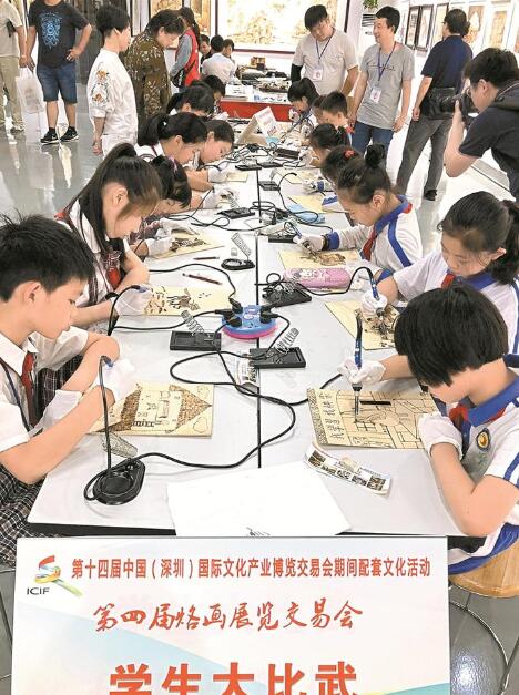 昨天下午的光明烙畫基地內(nèi)熱鬧非凡,前來一飽眼福的烙畫愛好者、市民群眾絡(luò)繹不絕。參觀者在基地內(nèi)體驗烙畫創(chuàng)作,與烙畫老師交流學(xué)習(xí),更增添了文化氛圍。據(jù)了解,此次烙畫展交會由深圳文學(xué)藝術(shù)界聯(lián)合會、深圳市光明新區(qū)管理委員會指導(dǎo),深圳市工藝美術(shù)行業(yè)協(xié)會、深圳市烙畫藝術(shù)協(xié)會黨支部主辦、深圳弘揚烙畫藝術(shù)發(fā)展有限公司承辦,以“助推深圳文化綠洲,傳承民族非遺烙畫”為主題。