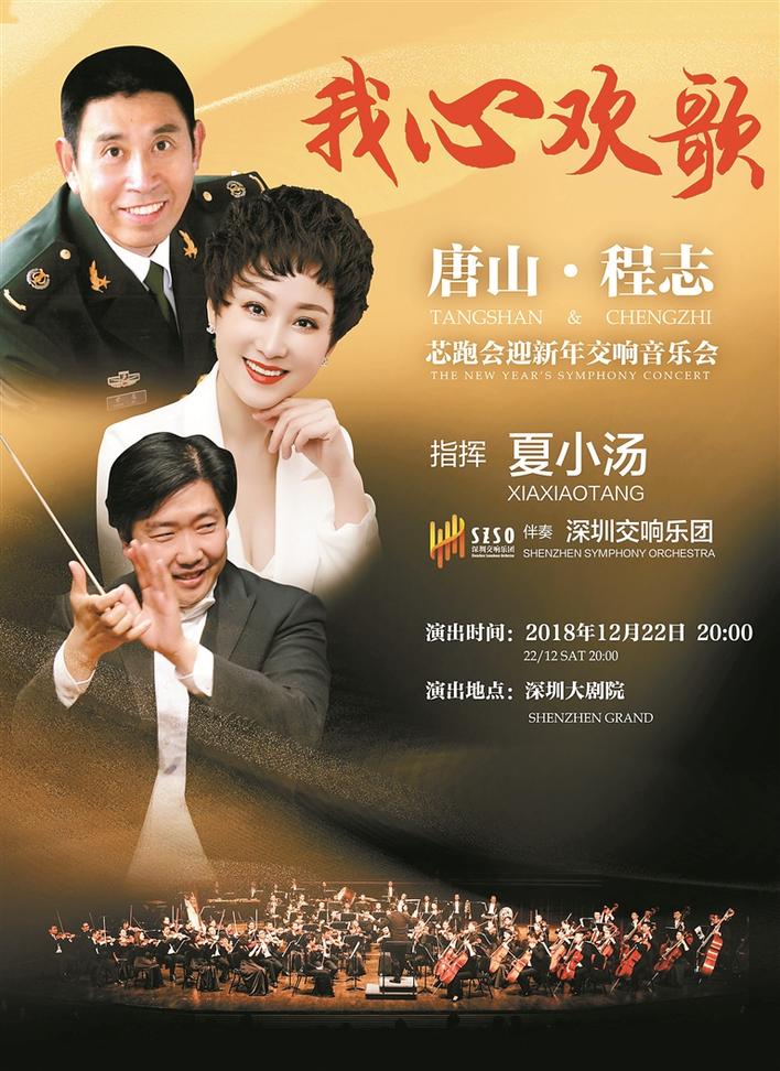 深圳晚報2018年12月13日訊 12月22日,“我心歡歌”唐山·程志音樂會將唱響深圳大劇院。本場音樂會由著名指揮家夏小湯執(zhí)棒,深圳交響樂團演奏。當晚,深圳本土歌唱家唐山和國內著名男高音程志將為觀眾獻上多首中外經典名曲和個人保留曲目。