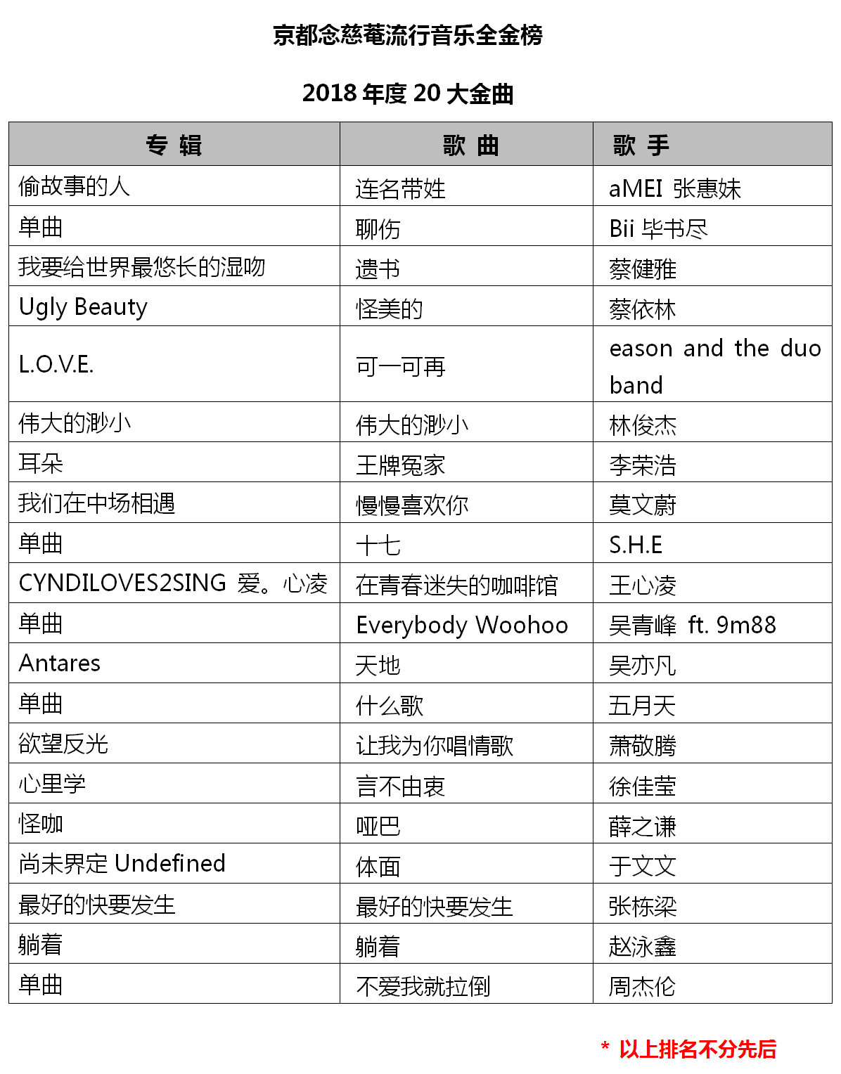 “年度最受歡迎專輯”方面,作為華語樂壇中堅(jiān)力量的李榮浩、林俊杰、薛之謙、蕭敬騰、aMEI張惠妹、張藝興、蔡依林、莫文蔚、陳奕迅、王心凌的實(shí)力上榜,又一次用優(yōu)質(zhì)的音樂作品印證了他們舉足輕重的樂壇地位。