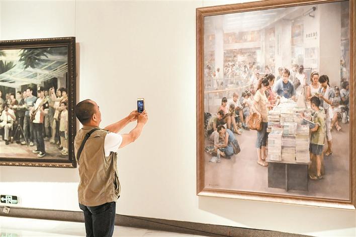 開窗便看見了美麗的風(fēng)景。開展當(dāng)天美術(shù)館剛一開門就吸引了不少市民前來(lái)觀看。他們懷著迫切的心情,第一時(shí)間趕來(lái),一睹美術(shù)作品中的“深圳故事”。