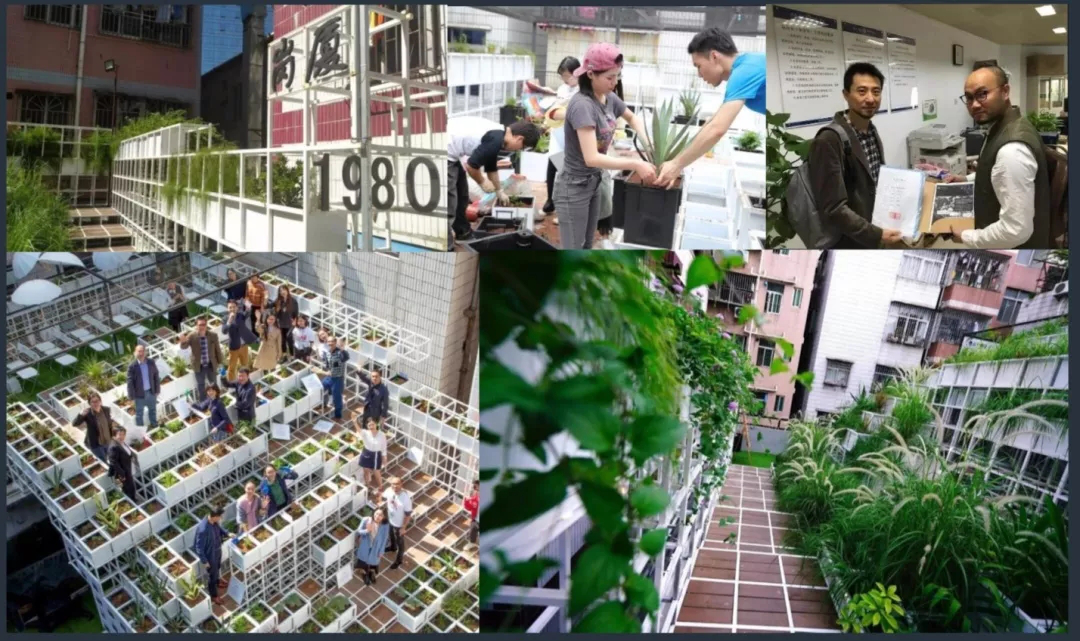 來自本地智慧的聯(lián)合創(chuàng)始人謝克非先生介紹說,作為城中村改造的實(shí)踐者,我們在做就是如何在這些矛盾中獲得共生?;蛘哒f,如何把所有矛盾點(diǎn)結(jié)合起來,讓城中村可以可持續(xù)地發(fā)展。所以在2018年3月聯(lián)合大自然保護(hù)協(xié)會(TNC)、桃花源生態(tài)保護(hù)基金會、深圳市城市規(guī)劃設(shè)計(jì)研究院、聯(lián)合公設(shè)發(fā)布了綠色天臺:愚公計(jì)劃2.0——崗廈1980海綿城市綠色屋頂示范項(xiàng)目。這個綠植天臺不僅是能夠美化環(huán)境,截存雨水、循環(huán)灌溉綠植等,更重要的是我們希望它作為一個平臺,把NGO的理念注入城中村,讓大家把對城中村的注意力從貧富懸殊、拆遷轉(zhuǎn)移到綠色環(huán)保,促進(jìn)可持續(xù)的發(fā)展。這里不僅是個景觀的平臺,更是內(nèi)容發(fā)動機(jī),能夠持續(xù)地產(chǎn)生更多的內(nèi)容。通過藝術(shù)、教育、公益等不同板塊的活動,以內(nèi)容的方式,把文化、環(huán)保、可持續(xù)發(fā)展等的信號不斷在這個點(diǎn)上發(fā)散出去,讓大家重新認(rèn)識城中村,從持續(xù)性的內(nèi)容信息實(shí)現(xiàn)社區(qū)營造,服務(wù)不同階層的人,讓更多人覺得環(huán)保、教育這件事情其實(shí)是非常有趣的,不生硬的,大家會主動繼續(xù)攜手服務(wù)社區(qū)。