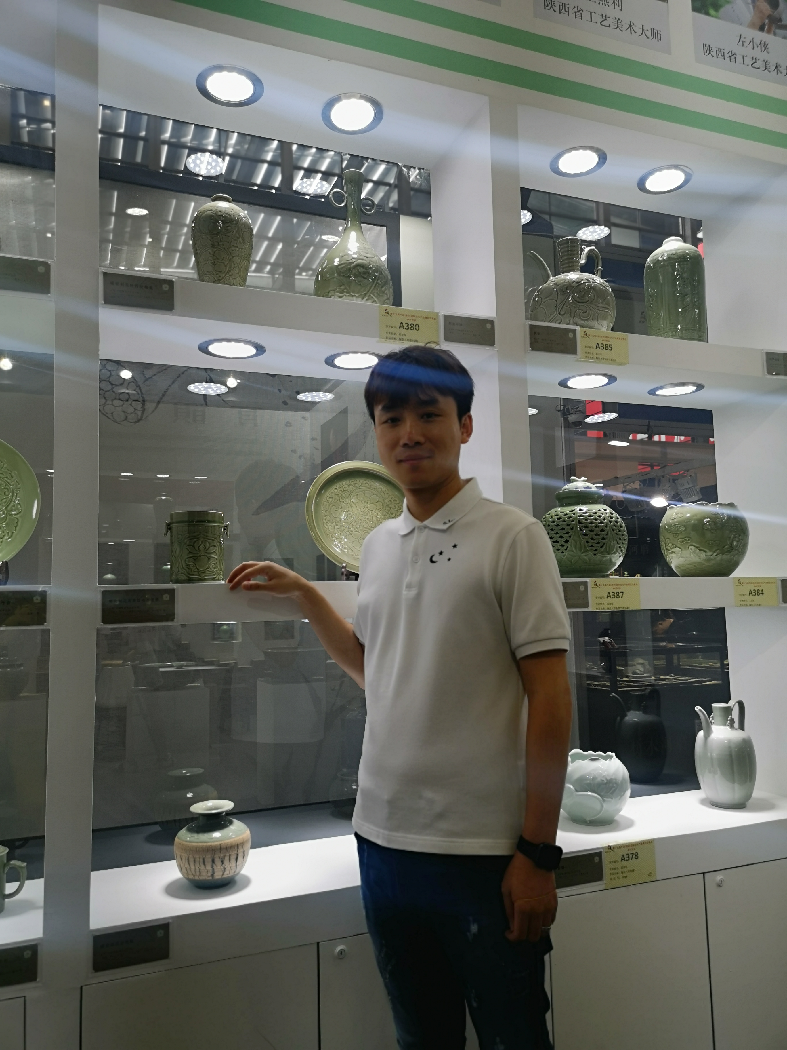 據(jù)了解,此次文博會中國工藝美術(shù)大師孟樹鋒先生共帶來了十六件作品參展,同時還有省級以上的美術(shù)大師作品,他們沉穩(wěn)雄渾,精美絕倫,代表了耀州青瓷年輕一代的工藝及水準。