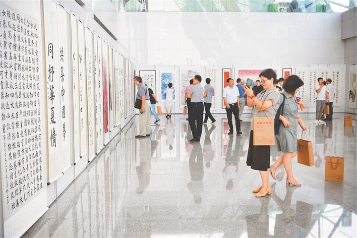 深圳特區(qū)報訊(記者尹春芳/文胡蕾/圖)一幅幅洋溢著激情的書畫作品,飽含對時代的歌頌。為慶祝中華人民共和國成立七十周年,由深圳市書畫家協(xié)會策劃,并聯(lián)合深圳民族精神和中國發(fā)展研究中心主辦,深圳市嘉鑫輝煌公司投資有限公司承辦,深圳汕尾商會協(xié)辦的“向祖國致敬——深圳書畫作品展暨感恩筆會”于昨天下午在深圳市民中心C禮廳開幕?,F(xiàn)場高朋滿座,氣氛熱烈,彌漫著濃厚的藝術(shù)氣息,展現(xiàn)了鵬城深厚的藝術(shù)底蘊。