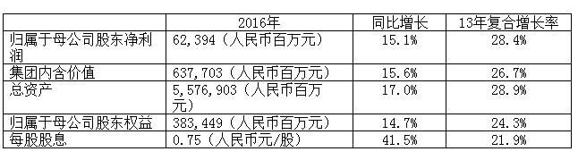 中國平安保險(xiǎn)(集團(tuán))股份有限公司(以下簡稱“中國平安”、“平安”、“集團(tuán)”或“公司”,股票代號:香港證券交易所2318,上海證券交易所601318)公布截至2016年12月31日全年業(yè)績。
