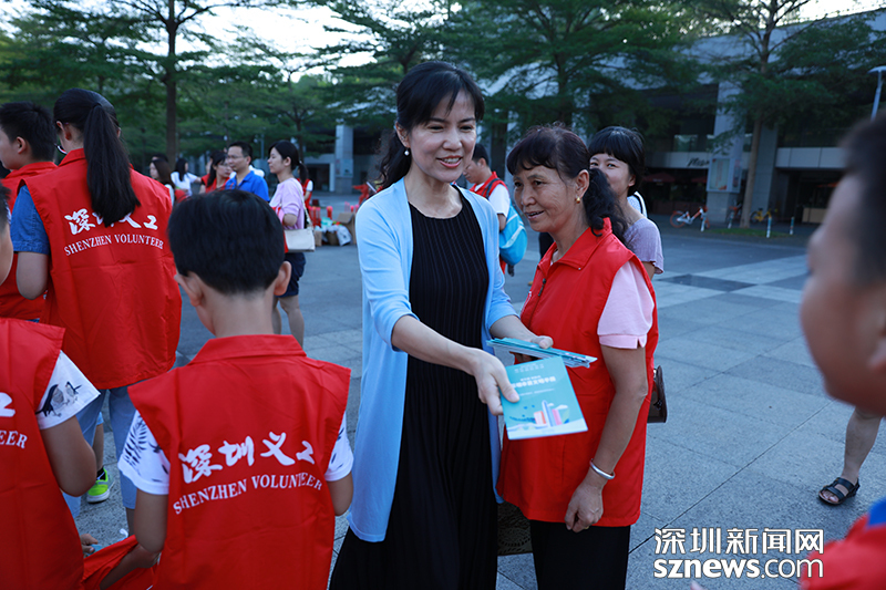 深圳市關(guān)愛(ài)辦副主任華榮向孩子們贈(zèng)送《文明手冊(cè)》