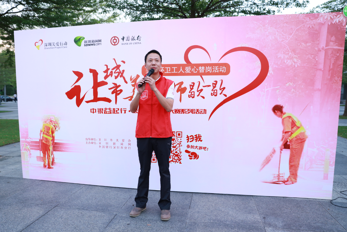 據(jù)了解,本次“愛(ài)心替崗”不僅是城管局發(fā)起的公益活動(dòng),同時(shí)也是由深圳市關(guān)愛(ài)行動(dòng)組組委會(huì)辦公室、深圳新聞網(wǎng)、中國(guó)銀行深圳分行聯(lián)合發(fā)起的手機(jī)公益攝影大賽“中銀益起行 最溫暖的瞬間”的第二場(chǎng)公益活動(dòng)。該活動(dòng)旨在通過(guò)策劃舉辦系列公益活動(dòng),號(hào)召市民關(guān)注記錄身邊人扶貧濟(jì)困、孝順父母、城市文明、環(huán)境保護(hù)、鄰里和睦等溫暖瞬間,傳遞社會(huì)溫情,提升生活幸福指數(shù)。