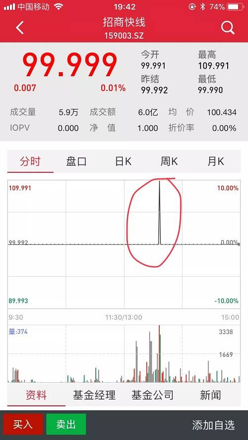 基金君大致講一下這個(gè)過程。2018年3月13日,招商保證金快線A在二級(jí)市場(chǎng)盤中價(jià)格出現(xiàn)了109.991的超高成交價(jià),成交金額5511.95萬元,業(yè)內(nèi)人士看來,這大概率是由“烏龍指”所致,不過,這不小心的手一抖,粗略估算就要浮虧約500萬,一套房就這么沒了。