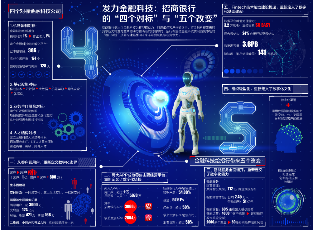 相關(guān)數(shù)據(jù)顯示,金融科技正讓招行再一次全面“進(jìn)化”。盡管這種“進(jìn)化”短期內(nèi)可能反映不到財(cái)務(wù)報(bào)表上,但長期來看將決定招行未來的競爭優(yōu)勢。