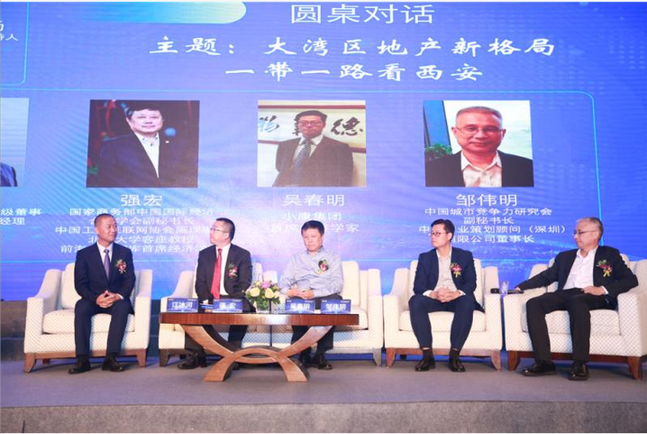 圓桌論壇環(huán)節(jié),戴德梁行高級(jí)董事、粵港澳大灣區(qū)業(yè)務(wù)總經(jīng)理江冰河、商務(wù)部中國(guó)國(guó)際經(jīng)濟(jì)合作學(xué)會(huì)副秘書長(zhǎng)強(qiáng)宏、小康集團(tuán)董事長(zhǎng)陶三定、小康集團(tuán)首席經(jīng)濟(jì)學(xué)家吳春明、中國(guó)城市競(jìng)爭(zhēng)力研究會(huì)副秘書長(zhǎng)、中城產(chǎn)業(yè)策劃顧問(深圳)有限公司董事長(zhǎng) 鄒偉明等同臺(tái)論道,分別圍繞大灣區(qū)建設(shè)與城市更新,一帶一路看西安等話題,論劍房地產(chǎn)未來發(fā)展。