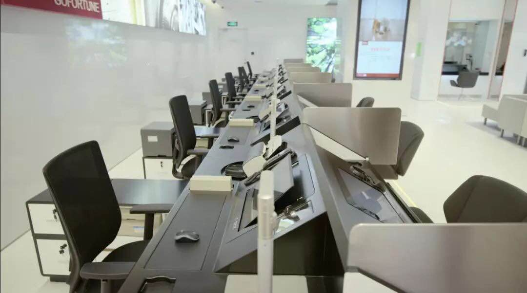在客戶隱私保護(hù)方面,招行3.0網(wǎng)點(diǎn)也可謂是下足了功夫,傳統(tǒng)聯(lián)排的理財柜臺設(shè)計成了小隔間,增加了私密性。金葵花區(qū)所有的洽談間都配備了霧化玻璃,沒有客戶的時候,玻璃呈透明狀態(tài),有客戶的時候,玻璃就可以一鍵霧化,有效保護(hù)客戶隱私。