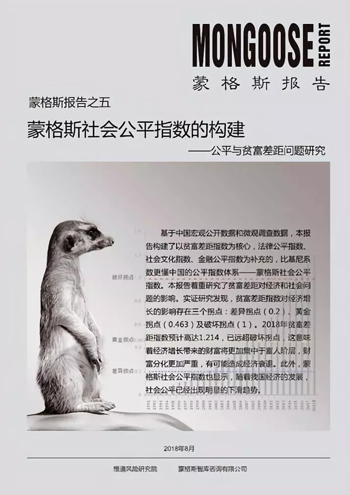 2017年7月,惟道風(fēng)險(xiǎn)研究院攜手多位來自學(xué)術(shù)界、企業(yè)界的專家學(xué)者,在朱小黃博士及中央財(cái)經(jīng)大學(xué)商學(xué)院副院長(zhǎng)林嵩教授的主持下,成立了蒙格斯社會(huì)公平指數(shù)研究課題組,歷時(shí)一年精耕細(xì)作,構(gòu)建了以貧富差距為核心,綜合考量法律、社會(huì)文化及金融等影響公平維度的蒙格斯社會(huì)公平指數(shù),并開發(fā)了貧富差距與經(jīng)濟(jì)增長(zhǎng)的拐點(diǎn)體系。