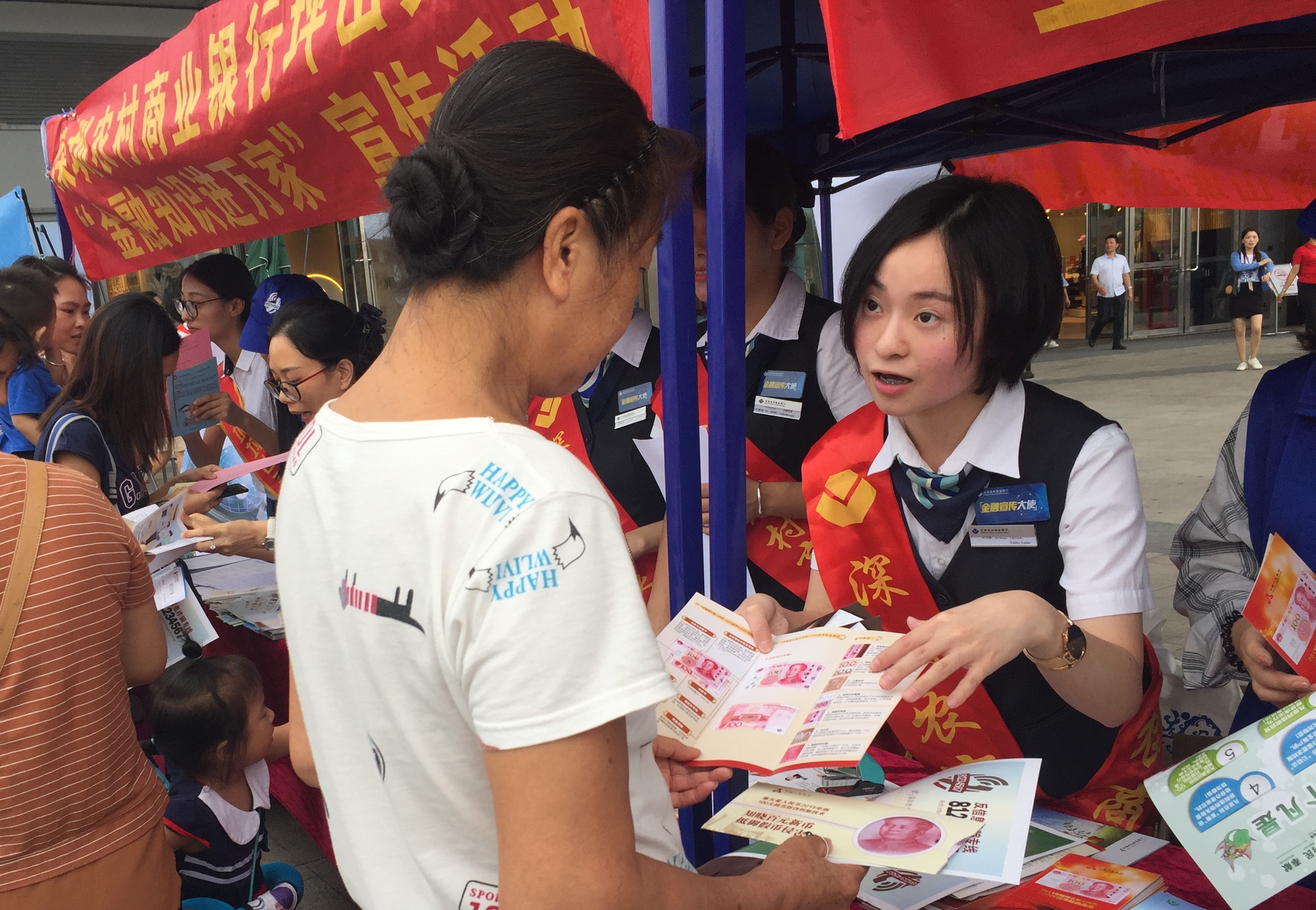 為進(jìn)一步推動(dòng)金融知識(shí)的廣泛傳播,9月28日,深圳農(nóng)村商業(yè)銀行攜同光大銀行、郵政儲(chǔ)蓄銀行、坪山珠江村鎮(zhèn)銀行在坪山區(qū)大型商場(chǎng)“益田假日世界廣場(chǎng)”舉行“金融知識(shí)宣傳活動(dòng)”?;顒?dòng)現(xiàn)場(chǎng)來咨詢的市民絡(luò)繹不絕,很多聽完講解的市民都對(duì)這種貼心的宣傳服務(wù)譽(yù)不絕口。