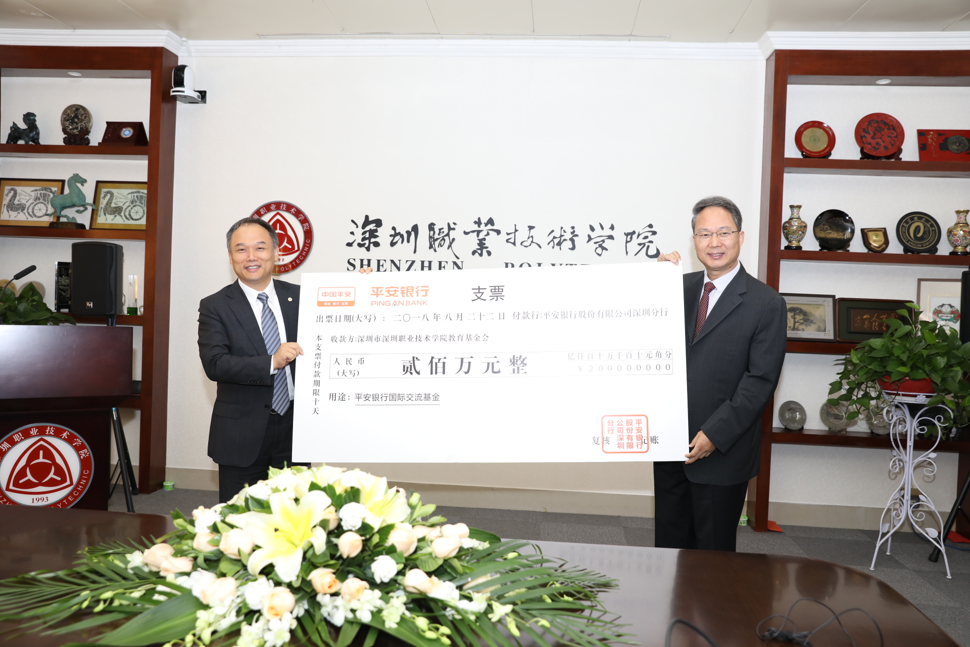 2018年11月22日,平安銀行與深圳職業(yè)技術(shù)學(xué)院校園一卡通項(xiàng)目交付儀式暨國(guó)際交流基金捐贈(zèng)儀式在深圳職業(yè)技術(shù)學(xué)院101會(huì)議室隆重舉行。平安銀行行長(zhǎng)助理、深圳分行楊志群行長(zhǎng)、孫芳滔副行長(zhǎng)、陳宏敬副行長(zhǎng)、高寒竹零售總監(jiān),深圳職業(yè)技術(shù)學(xué)院陳秋明黨委書(shū)記、唐曉鳴副校長(zhǎng)、董朝君副校長(zhǎng)等領(lǐng)導(dǎo)出席了儀式。
