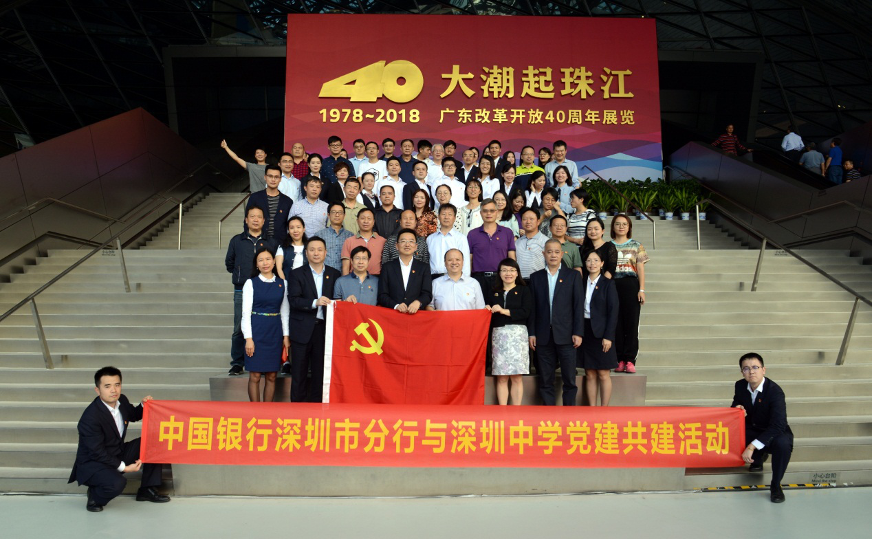 近日,中國銀行深圳東門管轄支行與深圳中學(xué)開展黨建共建活動(dòng),雙方黨員代表共同前往深圳改革開放展覽館,參觀了“大潮起珠江——廣東改革開放40周年展覽”。深圳中行蒙震紀(jì)委書記和深圳中學(xué)王東文副校長(zhǎng)帶領(lǐng)黨員代表參加了此次活動(dòng)。