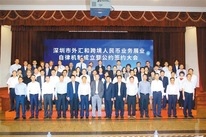 2016年9月20日,深圳市外匯和跨境人民幣業(yè)務(wù)展業(yè)自律機(jī)制成立合影。