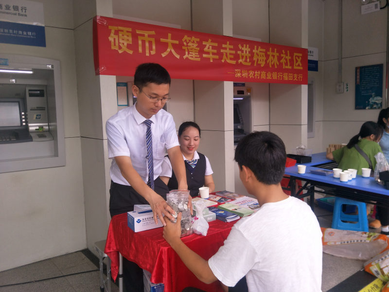 深圳新聞網(wǎng)訊 為深入貫徹黨的十九大精神,積極落實(shí)普惠金融政策,優(yōu)化現(xiàn)金流通環(huán)境,提升現(xiàn)金服務(wù)水平,深圳農(nóng)村商業(yè)銀行梅林支行積極落實(shí)現(xiàn)金服務(wù)示范區(qū)工作,并于8月3日攜手威豹押運(yùn)公司走進(jìn)梅林社區(qū),舉辦了硬幣兌換大篷車活動(dòng)。