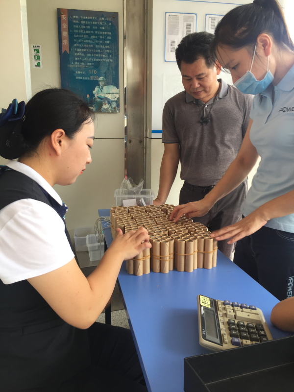 活動(dòng)當(dāng)天大雨滂沱,但社區(qū)居民兌換熱情依舊不減,經(jīng)過10個(gè)小時(shí)的清點(diǎn)工作,本次共回籠硬幣121802枚,其中1角66200枚,5角7084枚,1元48518枚,合計(jì)人民幣58680元。在兌換硬幣的同時(shí),深圳農(nóng)村商業(yè)銀行工作人員向周邊居民普及現(xiàn)金基礎(chǔ)知識和防范風(fēng)險(xiǎn)的技能。
