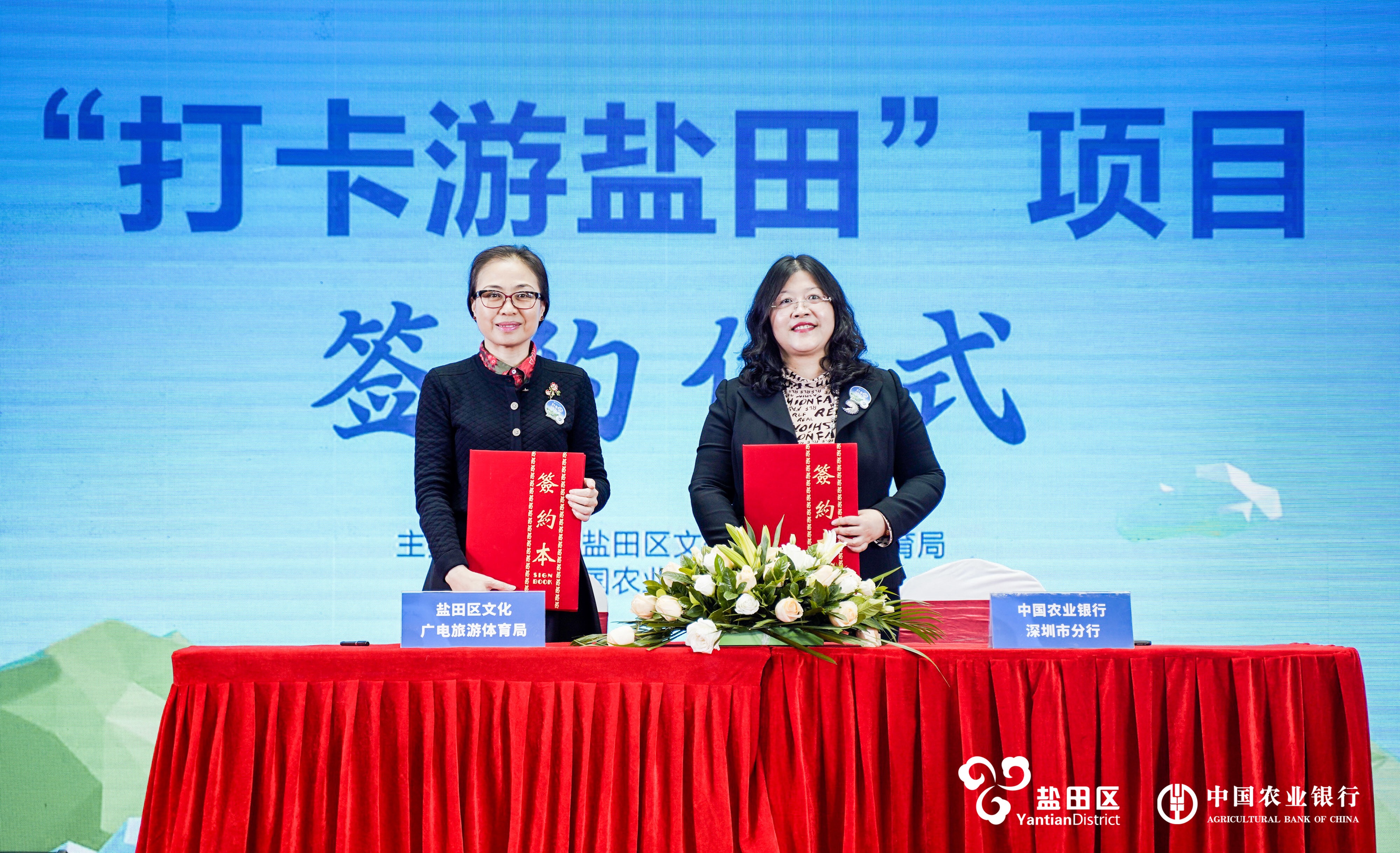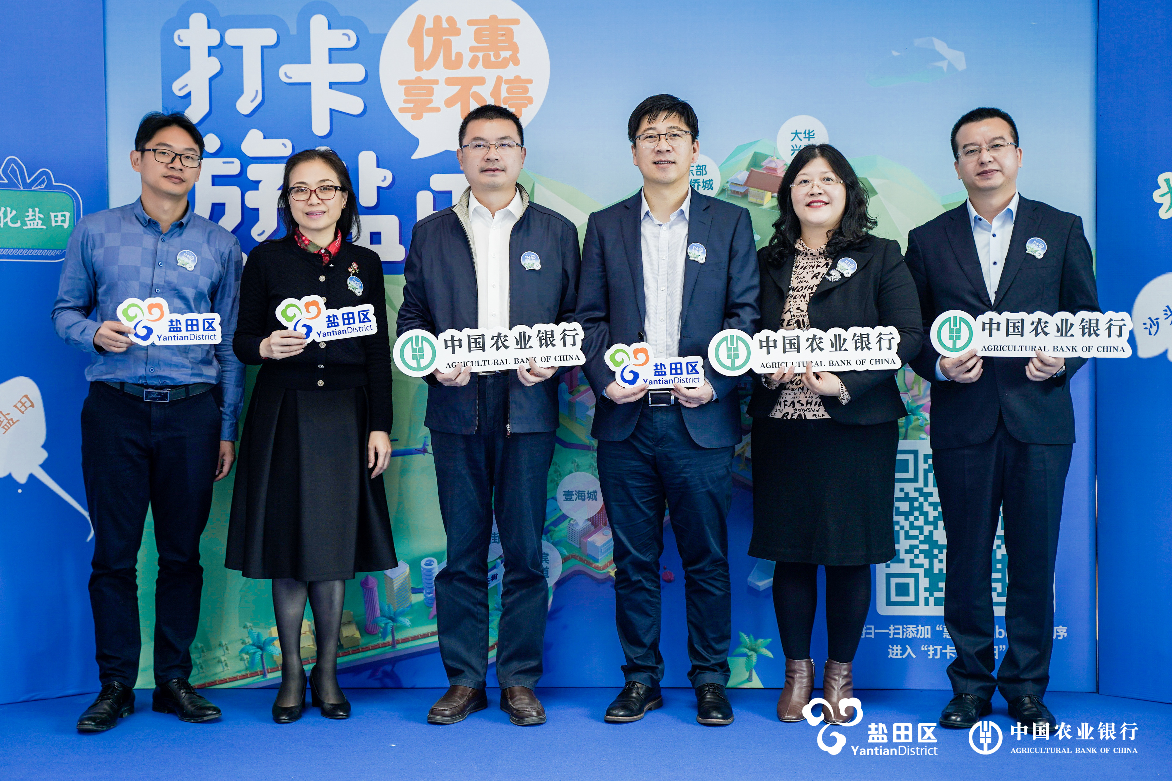 2019年12月17日上午,由深圳市鹽田區(qū)文化廣電旅游體育局主辦,農(nóng)行深圳分行承辦的鹽田區(qū)第二期“打卡游鹽田”活動發(fā)布會在鹽田ONE MALL商場舉行。鹽田區(qū)副區(qū)長羅毅、鹽田區(qū)文化廣電旅游體育局局長彭潔、鹽田區(qū)文化廣電旅游體育局副局長王智華、農(nóng)行深圳分行副行長魏秉全、農(nóng)行深圳分行信用卡中心總經(jīng)理張珂等相關(guān)領(lǐng)導出席發(fā)布會。會上,鹽田區(qū)副區(qū)長羅毅、農(nóng)行深圳分行副行長魏秉全先后做開幕致辭與活動方案,鹽田區(qū)文化廣電旅游體育局局長彭潔、農(nóng)行深圳分行信用卡中心總經(jīng)理張珂現(xiàn)場簽署了《鹽田區(qū)第二期“打卡游鹽田”活動合作協(xié)議》,宣告活動正式落地。