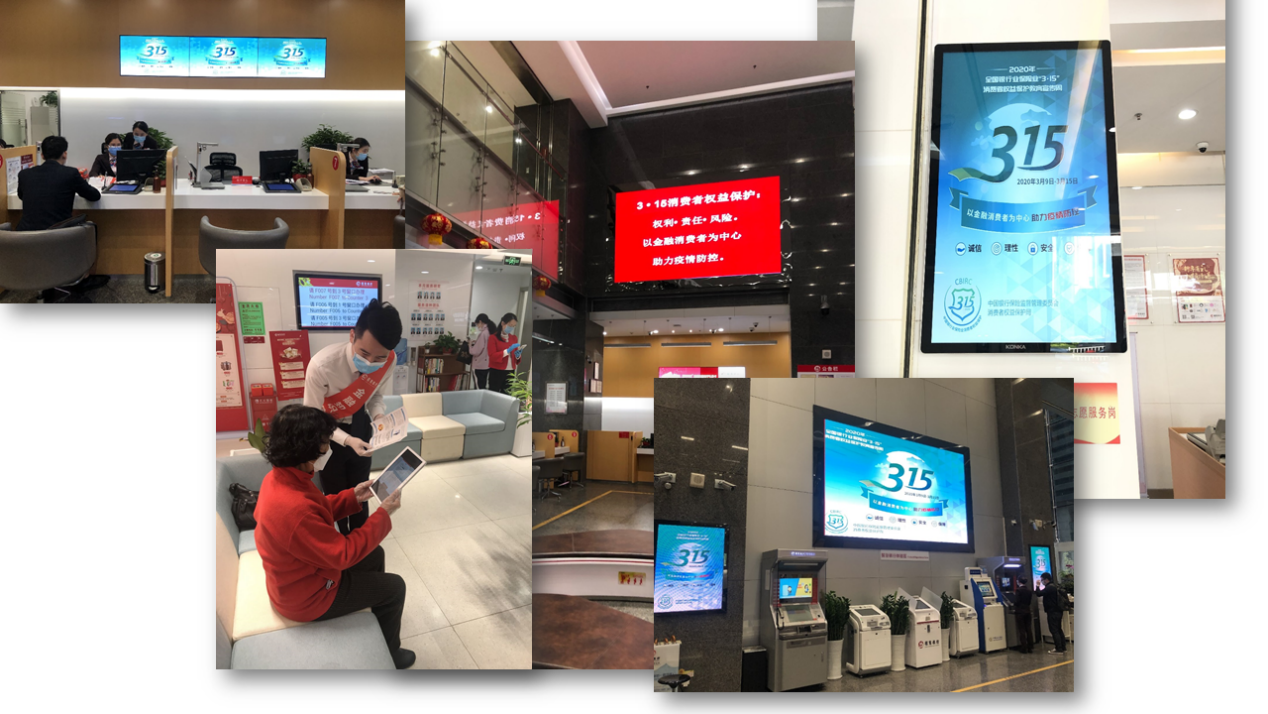 受疫情影響,在今年的3.15宣傳教育活動期間,招商銀行深圳分行因時制宜,充分借助互聯(lián)網(wǎng)媒體渠道,加大線上宣教推廣力度。其中,原創(chuàng)漫畫、視頻等已在中國銀行業(yè)協(xié)會、中國人民銀行深圳市中心支行、招商銀行總行以及信用卡中心的官方微信、微博等各大平臺競相上線,獲得了消費者的廣泛好評。同時,在手機銀行 App網(wǎng)點線上店開辟“消保有招”3.15專欄,不斷開創(chuàng)新的宣傳場景和消費者觸點。結(jié)合電臺廣播交通頻率1062、新聞898、音樂971等傳統(tǒng)媒體平臺在早晚高峰期循環(huán)播放活動主題,以短平快、覆蓋廣的方式大力推動金融宣教工作,進一步擴充宣傳渠道和受眾面。同時,以營業(yè)廳為陣地,通過跑屏、電子海報機、電視等多媒體設備播放宣傳素材,多種渠道共同推廣打造立體宣教格局,覆蓋更多消費者群體進一步增強影響力。