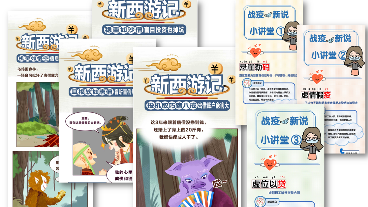 針對疫情期間頻繁出現(xiàn)電信網(wǎng)絡詐騙的情況,招商銀行深圳分行迅速反應,以原創(chuàng)漫畫、小視頻、線上直播及在線互動問答等新穎形式開展抗疫防騙線上宣教,對不同類型的詐騙套路進行揭示和解析,如虛假售賣醫(yī)用口罩、以慈善募捐名義騙取捐款等,及時對消費者進行風險提示。除此之外,還以普及金融消費者享有的八項法定權利、倡導金融消費者依法理性維權、宣傳個人征信業(yè)務網(wǎng)上辦理、識別非法金融廣告等知識為內(nèi)容,創(chuàng)作貼合時事、實用有趣、形式多樣的宣教作品,有效提升了消費者在疫情特殊時期的金融素養(yǎng)。