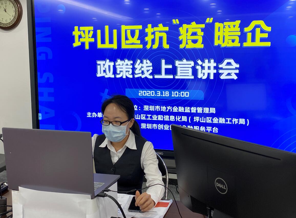 宣講完后,深圳農(nóng)商行坪山支行與企業(yè)進(jìn)行了線上互動(dòng)問答,對目前市、區(qū)各級政府部門在抗疫期間的扶持政策進(jìn)行解讀。據(jù)悉,該場宣講會(huì)共有144家企業(yè)報(bào)名參加,200余人在線觀看,會(huì)后當(dāng)天即有五家企業(yè)向深圳農(nóng)商行坪山支行咨詢?nèi)谫Y業(yè)務(wù)。