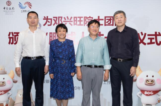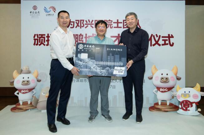 深圳新聞網(wǎng)·見圳客戶端2020年11月8日訊 昨日,深圳市光明區(qū)委常委、組織部部長繩萬青,中國銀行深圳市分行副行長韓竹代表深圳市光明區(qū)人才辦和中國銀行深圳市分行,為生物學(xué)家、美國國家科學(xué)院院士鄧興旺及部分團(tuán)隊(duì)成員頒發(fā)了“中銀鵬城人才卡”鉆石卡,這是全市范圍內(nèi)首張向在深院士發(fā)放的“中銀鵬城人才卡”,標(biāo)志著這張由光明區(qū)人才辦和深圳中行共同策劃推出的人才卡實(shí)現(xiàn)了市級(jí)認(rèn)定的各層級(jí)人才全覆蓋。鄧興旺院士是深圳市杰出人才獲得者、深圳市作物分子設(shè)計(jì)育種研究院院長、深圳興旺生物種業(yè)有限公司董事長,他帶領(lǐng)團(tuán)隊(duì)2010年到深圳創(chuàng)業(yè),多年來在水稻領(lǐng)域取得兩項(xiàng)重大技術(shù)突破,其中“潔田模式”大規(guī)模市場示范面積達(dá)到50萬畝,有效加快了中國農(nóng)業(yè)的輕簡化、現(xiàn)代化步伐。