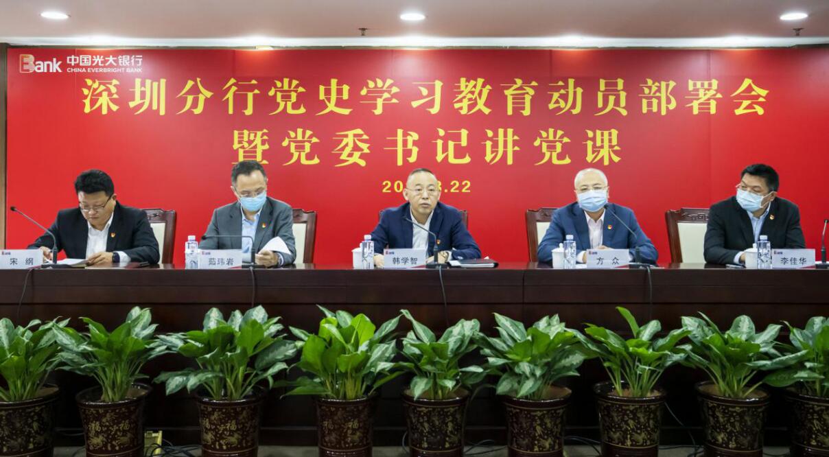 深圳新聞網(wǎng)·見(jiàn)圳客戶端2021年3月23日訊 知其史方能激其志,激其志方能盡其責(zé)。昨日,光大銀行深圳分行舉行黨史學(xué)習(xí)動(dòng)員部署會(huì)暨黨委書記講黨課,學(xué)習(xí)貫徹習(xí)近平總書記在黨史學(xué)習(xí)教育動(dòng)員大會(huì)上的重要講話精神和李曉鵬董事長(zhǎng)集團(tuán)黨史學(xué)習(xí)教育動(dòng)員部署會(huì)講話精神。分行黨委書記、行長(zhǎng)韓學(xué)智全面動(dòng)員部署黨史學(xué)習(xí)教育工作,并講《學(xué)習(xí)中共黨史 牢記使命擔(dān)當(dāng)—中國(guó)共產(chǎn)黨從“一大”到“三大”的歷史沿革》專題黨課。分行黨委委員、紀(jì)委書記方眾主持會(huì)議并對(duì)《深圳分行黨委黨史學(xué)習(xí)教育工作方案》進(jìn)行了宣講和具體工作部署,分行領(lǐng)導(dǎo)班子成員和全體中層干部共160多人參加會(huì)議。