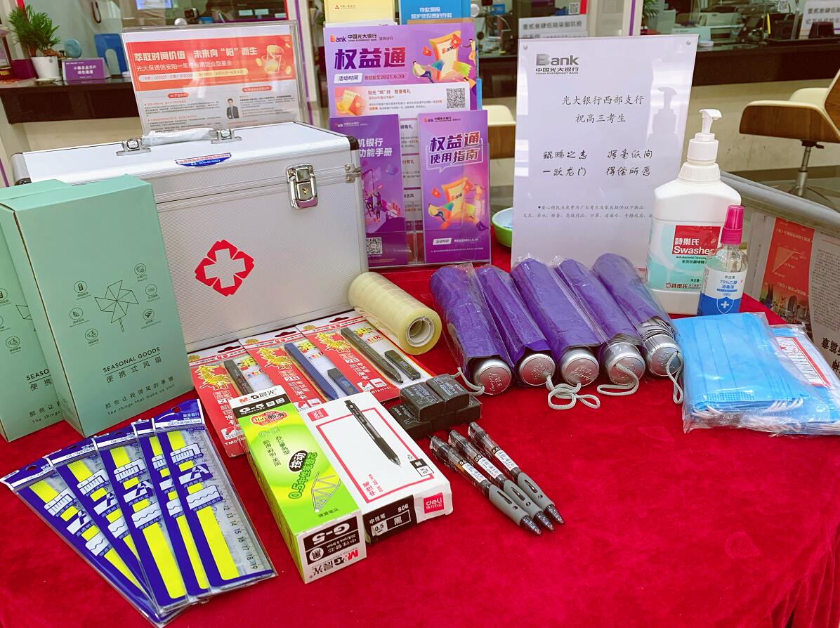 6月7日-8日期間,光大銀行深圳分行的一些支行網(wǎng)點(diǎn),出現(xiàn)了暖心的一幕——高考便民服務(wù)驛站免費(fèi)為附近考點(diǎn)的廣大考生與家長(zhǎng)提供部分文具、口罩、解暑藥品、茶水、便攜風(fēng)扇、遮陽傘等便民物品。不少送考家長(zhǎng)等候期間在便民驛站停留并感受到細(xì)心的服務(wù),連連稱贊銀行的服務(wù)人性化、貼心。