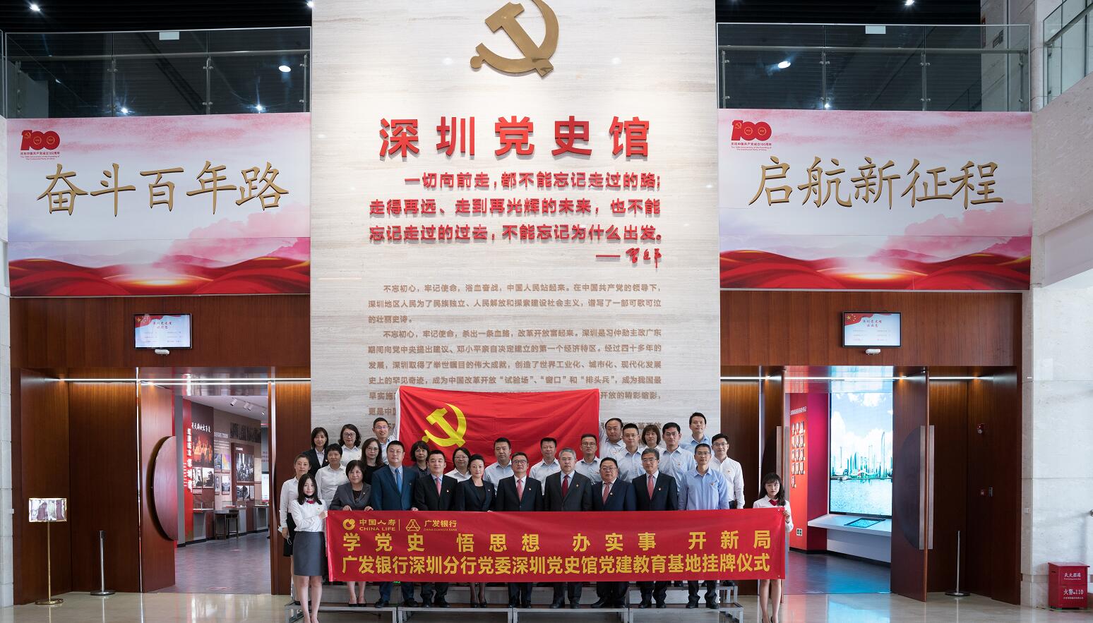 深圳新聞網(wǎng)2021年6月15日訊 近日,廣發(fā)銀行深圳分行在深圳黨史館方志館舉行深圳黨史館方志館現(xiàn)場教學基地掛牌儀式。分行黨委書記、行長王家銘同志,中共深圳市委黨史文獻研究室文獻處處長詹延欽同志出席儀式并共同揭牌。