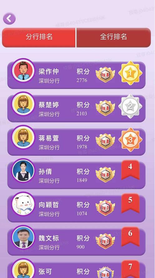 比賽由系統(tǒng)從題庫隨機(jī)抽取5道題目,并匹配在線員工進(jìn)行一對(duì)一挑戰(zhàn),考驗(yàn)員工的知識(shí)掌握情況和答題準(zhǔn)確度。根據(jù)積分情況,設(shè)置全行學(xué)習(xí)積分榜,鼓勵(lì)員工對(duì)標(biāo)學(xué)習(xí)情況,提升“知識(shí)段位”。