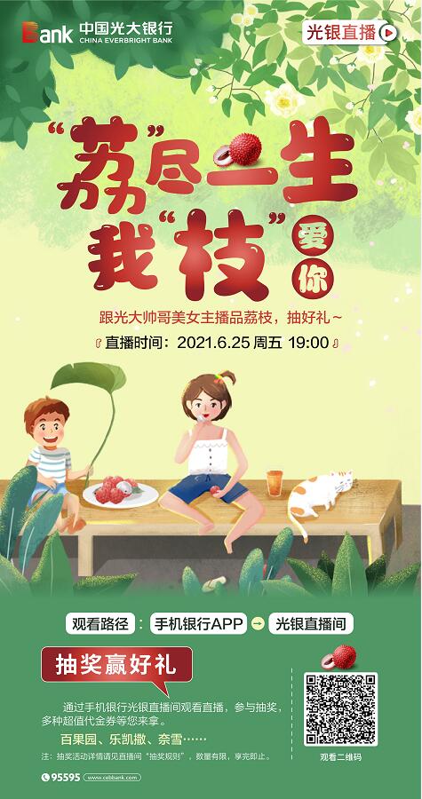 深圳新聞網(wǎng)2021年6月25日訊(記者 朱琳)“日啖荔枝三百顆,不辭長(zhǎng)作嶺南人”“一騎紅塵妃子笑,無(wú)人知是荔枝來(lái)”……時(shí)逢盛夏,又是品嘗荔枝的最佳時(shí)節(jié)。6月25日19時(shí),光大銀行深圳分行將通過(guò)手機(jī)銀行APP“光銀直播”共同開(kāi)啟荔枝品嘗之“夜”,并送出精美大獎(jiǎng),愛(ài)吃荔枝的你一定不要錯(cuò)過(guò)。