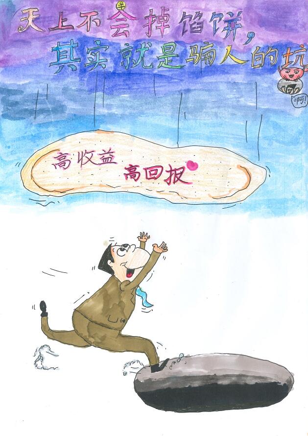 據(jù)了解,本次活動(dòng)以“防范電信網(wǎng)絡(luò)詐騙”“防范非法集資”“珍視個(gè)人信用”“打擊洗錢”等貼近日常生活的金融知識(shí)為題材,華夏銀行深圳分行組織員工子女們開(kāi)動(dòng)腦筋、發(fā)揮自身的聰明才智和想象力,通過(guò)漫畫(huà)、水彩畫(huà)、蠟筆畫(huà)等多種繪畫(huà)形式,將晦澀難懂的金融知識(shí)變得生動(dòng)形象、通俗易懂。