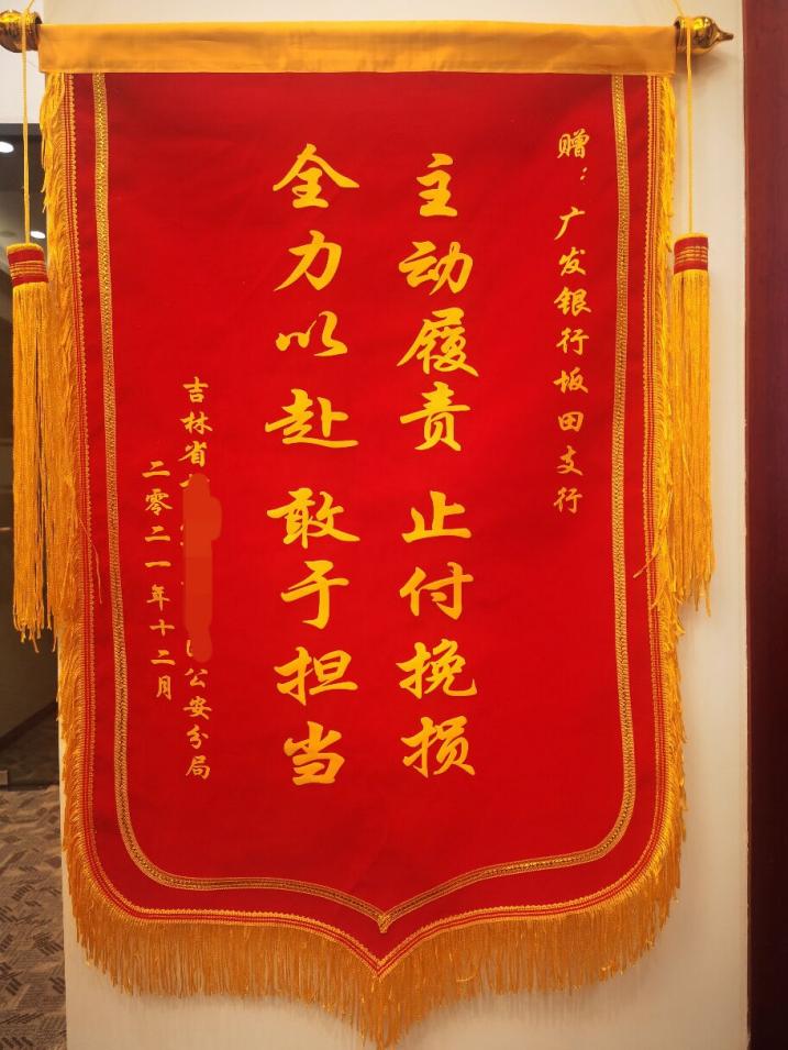 深圳新聞網(wǎng)2022年1月18日訊(記者 朱琳 通訊員 金橋)近日,廣發(fā)銀行深圳分行機(jī)智識別某公司賬戶涉嫌電信詐騙,成功堵截高達(dá)412萬元的涉案資金轉(zhuǎn)移。吉林省某市公安分局向該行授予錦旗,對該行有效保障人民群眾財(cái)產(chǎn)安全的行為給予了高度肯定。