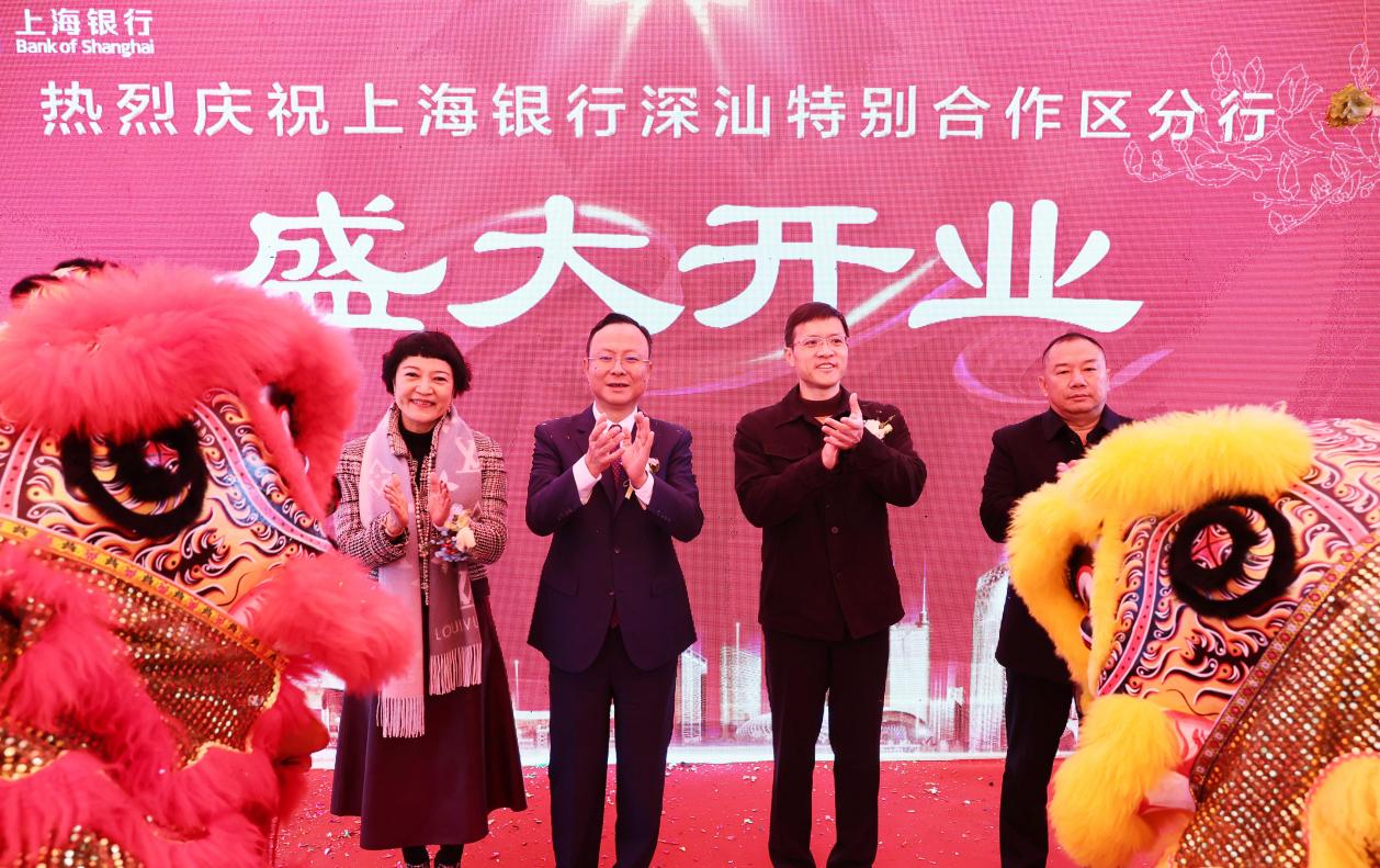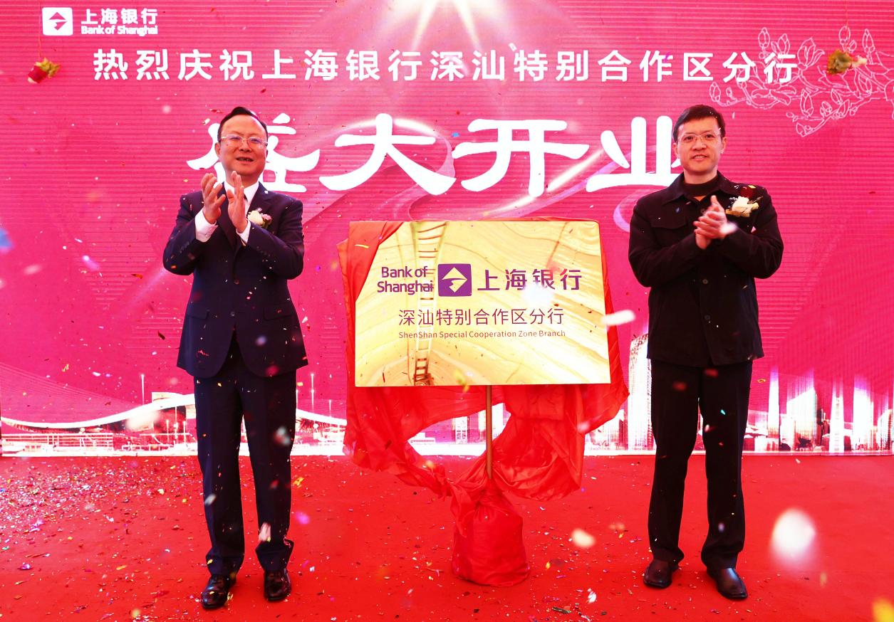 上海銀行朱健行長(zhǎng)和深汕特別合作區(qū)管委會(huì)吳曲波主任共同為深汕特別合作區(qū)分行揭牌