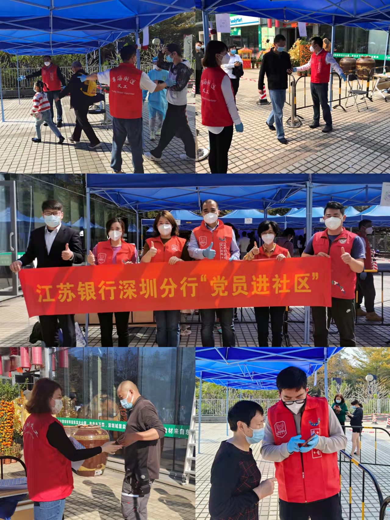 江蘇銀行深圳分行營業(yè)部黨支部書記、總經理楊晉國率隊趕赴科技園社區(qū)檢測點,積極響應南山區(qū)金融行業(yè)協(xié)會齊心抗疫號召,協(xié)助社區(qū)開展核酸檢測工作,引導群眾有序排隊、測溫登記、掃碼檢測。欲酬凌云志,當效逆行人。江蘇銀行深圳分行黨員同志始終與人民群眾堅守在一起,齊心協(xié)力、迎難而上。