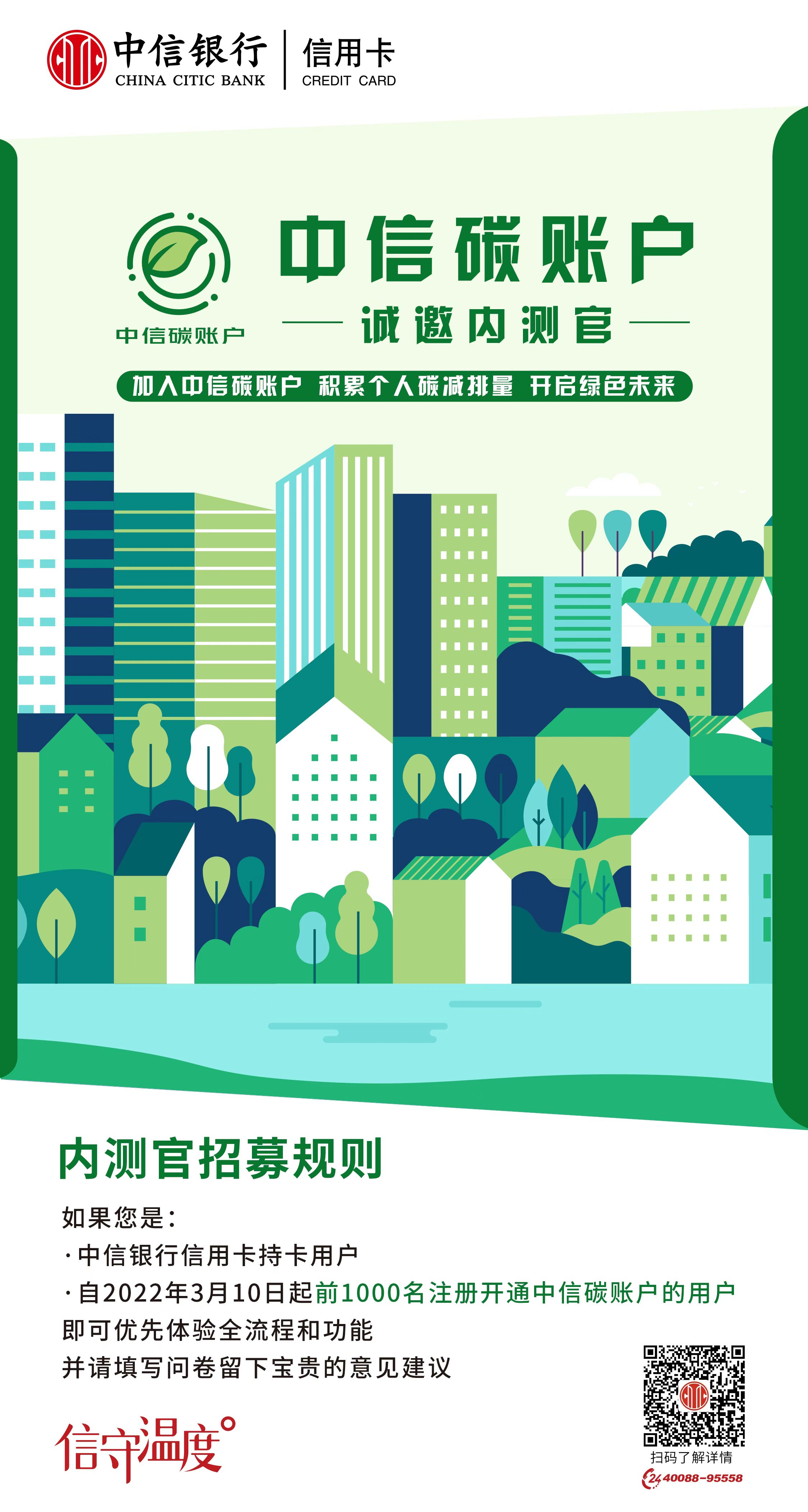 時值中國植樹節(jié)前夕,“中信碳賬戶”內(nèi)測版現(xiàn)已上線,于3月10日起公開招募1000名用戶參與內(nèi)測版體驗,首批體驗官登錄中信銀行信用卡“動卡空間”APP,即可在線開通個人碳賬戶,獲取關聯(lián)個人低碳行為的碳減排量,并可對碳賬戶的內(nèi)測版功能提供優(yōu)化建議。據(jù)中信銀行相關負責人介紹,目前,內(nèi)測版已經(jīng)上線生活繳費網(wǎng)上辦理(含水費、電費、燃氣費等)、申請電子信用卡、開通電子賬單等低碳行為的碳減排量核算。即將上線的公開版還將包含綠色出行、二手回收等更豐富的綠色低碳生活場景。