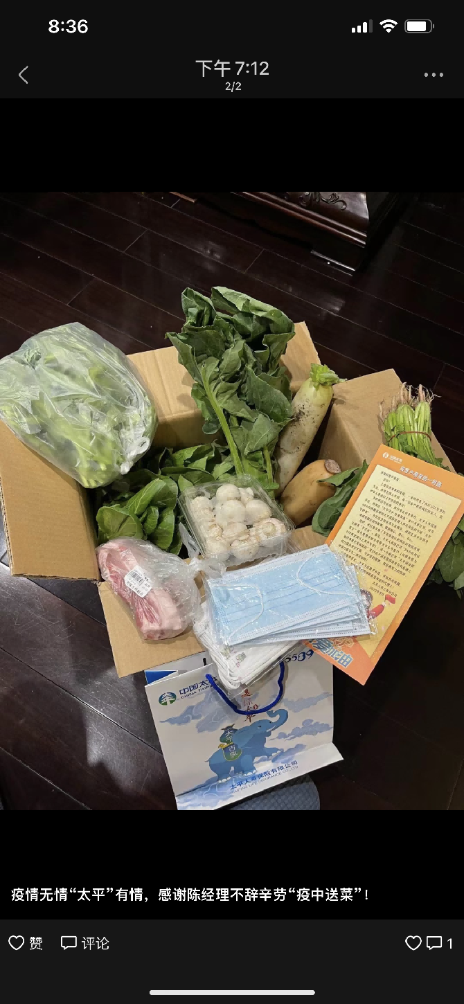 太平人壽代理人,紛紛化身太平守“滬”者,為疫情封控中的廣大客戶雪中送炭,切實解決了搶菜難的問題。據(jù)悉,活動推出至今,已有上百位客戶收到了“太平守護(hù)者”送上的暖心慰問,越來越多的客戶感受到了太平的溫暖。