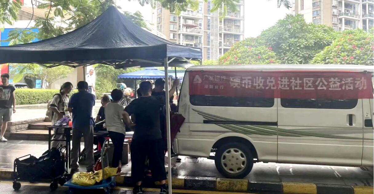 8月19日,廣發(fā)銀行深圳香蜜湖支行走進福田區(qū)水榭花都小區(qū),開展硬幣收兌進社區(qū)公益活動,附近居民和商戶紛紛帶著“沉睡已久”的硬幣前來兌換,工作人員通過硬幣清分機專業(yè)高效地進行清點和兌換,本次活動共收兌硬幣55015枚,切實解決群眾硬幣積壓的老大難問題。
