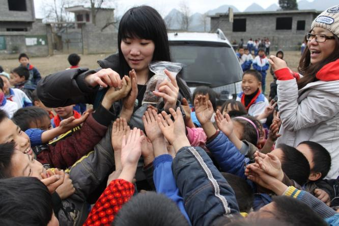 “我始終記得第一次去織金的情景。當(dāng)時(shí),我們從貴陽出發(fā),走了5個(gè)小時(shí)的盤山公路,2個(gè)小時(shí)坑坑洼洼的盤山小路才到。難以忘記的是破敗的教室里孩子們黝黑冰冷的小手,鼻子上掛著的兩條‘小蟲’,透著冬日寒風(fēng)的衣服上的破洞。他們半倚在簡陋的桌椅邊直打哆嗦,卻依然因?yàn)槲覀兊牡絹砭`放著暖陽般的笑臉。”原廣發(fā)銀行深圳分行副行長駱向東回憶起考察邊遠(yuǎn)村小時(shí)的情景,至今仍心疼不已。
