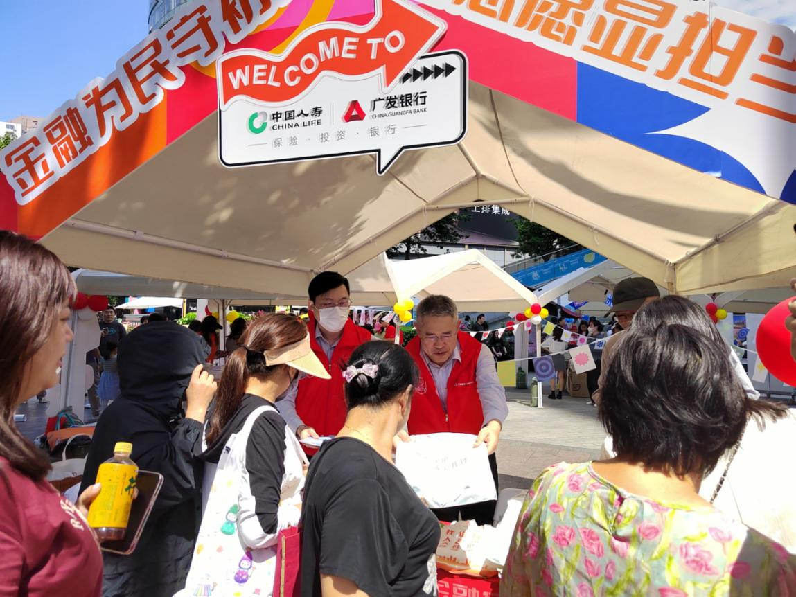 廣發(fā)銀行深圳分行紀(jì)委書記杜經(jīng)濤向現(xiàn)場(chǎng)群眾發(fā)放宣傳購(gòu)物袋