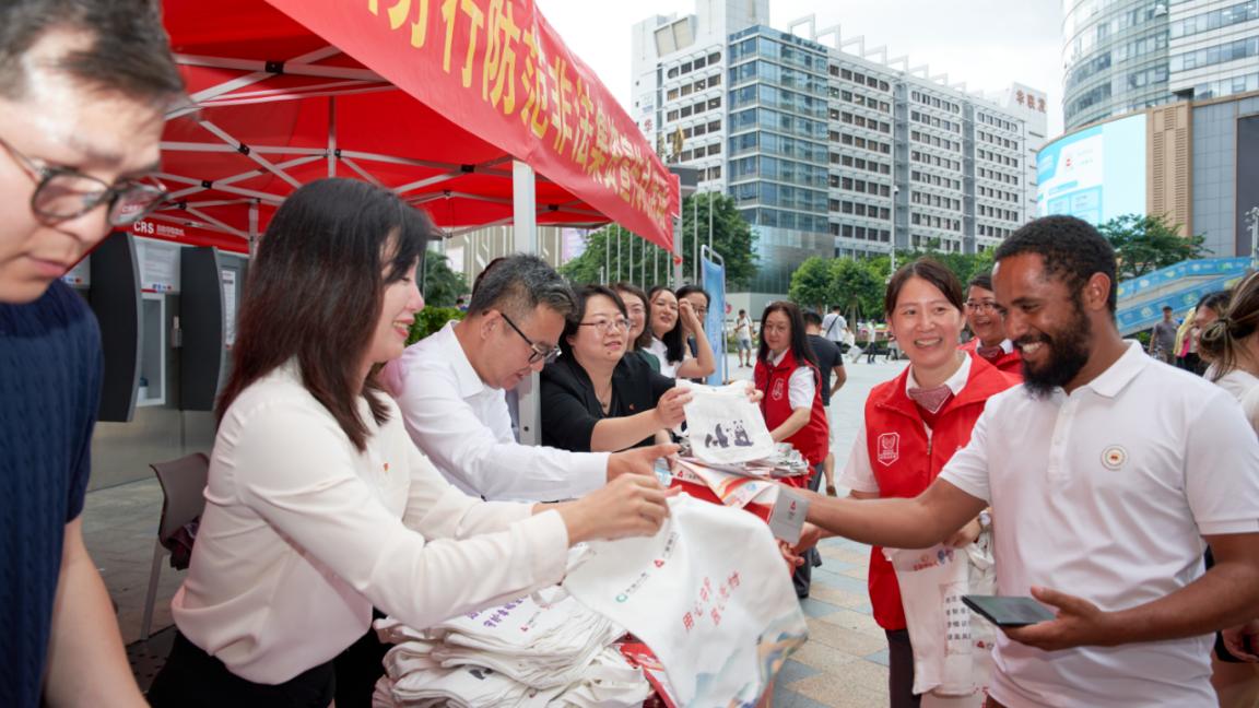 活動(dòng)現(xiàn)場毗鄰中國規(guī)模最大、產(chǎn)品種類最齊全的綜合電子專業(yè)交易市場“華強(qiáng)電子世界”,人流量密集。廣發(fā)銀行深圳分行宣傳志愿者積極向過往群眾分發(fā)“防詐反詐”“金融消費(fèi)者八項(xiàng)權(quán)益”“反洗錢”“征信知識(shí)”“資管新規(guī)”“人民幣真?zhèn)巫R(shí)別”等宣傳材料,一對(duì)一耐心解答群眾對(duì)信用貸款、規(guī)范用卡等業(yè)務(wù)咨詢,并通過講解最新詐騙案例剖析生活中常見金融風(fēng)險(xiǎn),幫助群眾提升風(fēng)險(xiǎn)識(shí)別能力,守好百姓“錢袋子”。