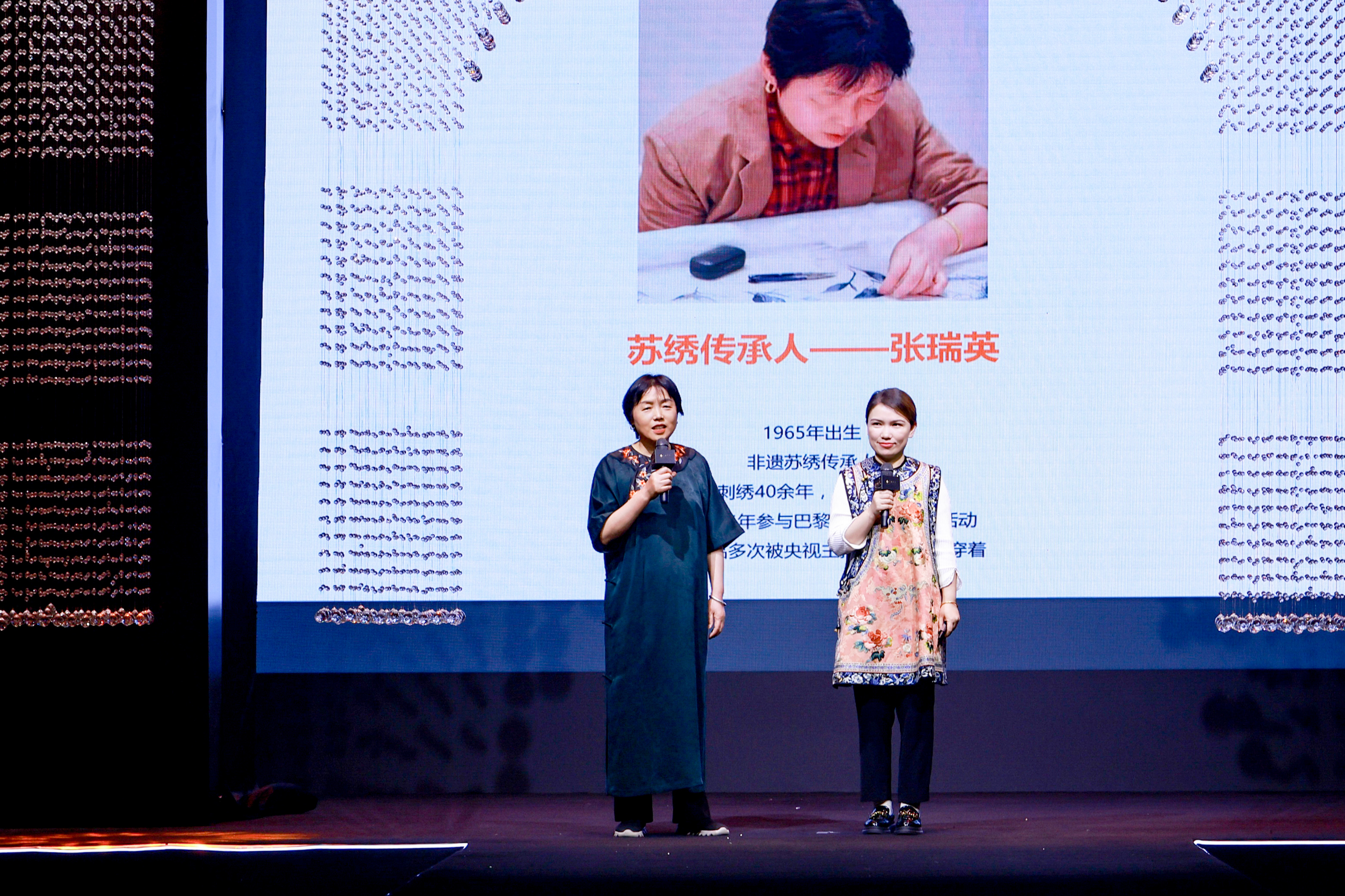 蘇繡傳人張瑞英現(xiàn)場進(jìn)行了蘇繡文化講解,讓非遺傳承技藝再上舞臺,將非遺元素運用在當(dāng)代的生活方式中,展現(xiàn)非遺文化非同尋常的光芒之處,傳播非遺重要傳承內(nèi)核,用服裝承載國風(fēng)文化,傳遞中國風(fēng)采。當(dāng)以蘇繡手藝復(fù)刻的百年服飾再現(xiàn)于秀場,傳統(tǒng)技藝真實演繹“經(jīng)典永流傳”,彰顯了傳承中國文化的手工技藝“奢侈品”含義。