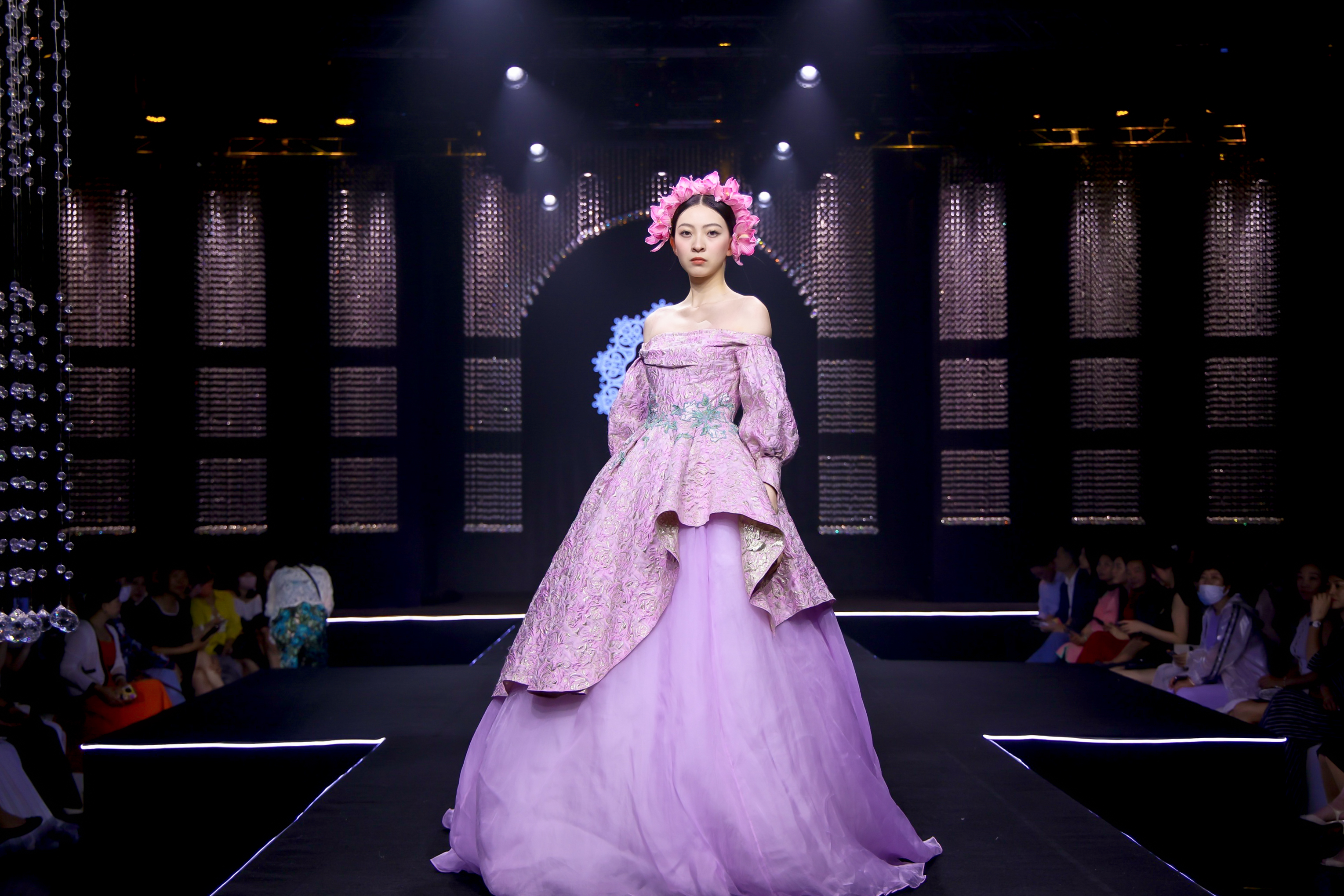 現(xiàn)場更有LANYU高定禮服展示,將中式美學(xué)意境與西式時尚剪裁完美融合,同時加重了蘇繡非遺元素的應(yīng)用比例,將更多的非遺技藝融入服飾創(chuàng)作中,呈現(xiàn)出超高藝術(shù)水準(zhǔn)。