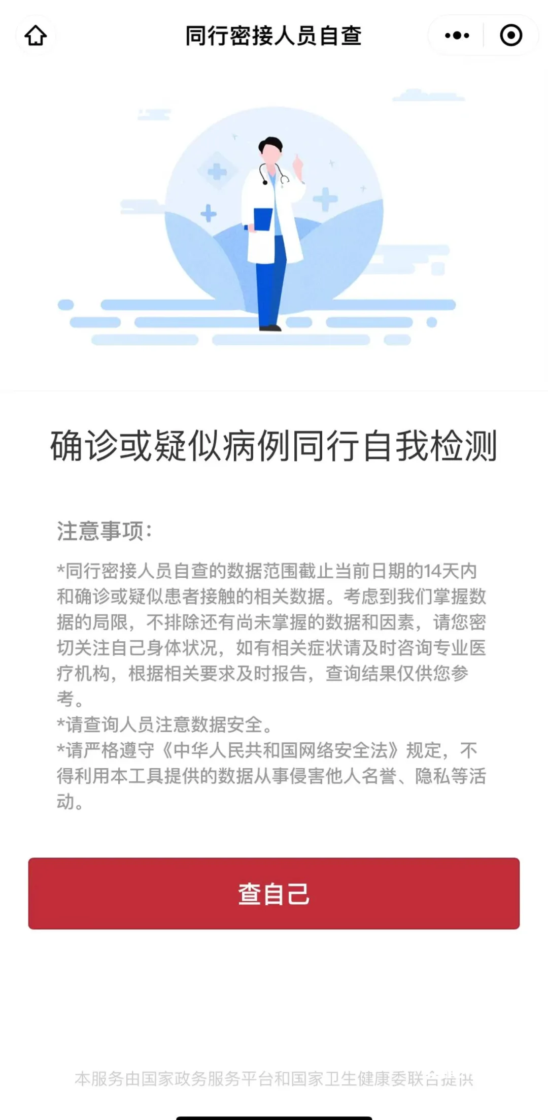同行自查服務(wù)由國(guó)家政務(wù)服務(wù)平臺(tái)和衛(wèi)健委聯(lián)合提供,14天內(nèi)乘坐過飛機(jī)或者火車等公共交通工具出行的市民可掃描下方二維碼進(jìn)行查詢。