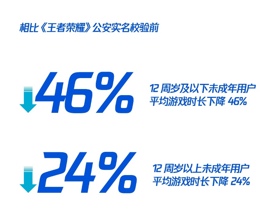 通過公安實(shí)名校驗的工作,未成年用戶的身份得到更精準(zhǔn)的判斷,平均游戲時長也呈現(xiàn)可見、顯著的下降。